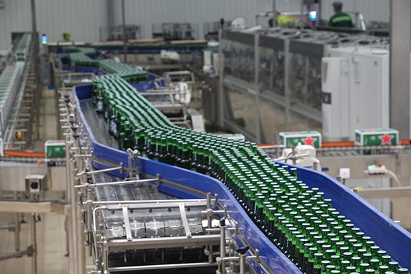 南京恒昌在玻璃瓶輸送系統設計和制造上擁有強大的技術實力和豐富的經驗,能夠設計制造速度達60000瓶/小時輸送系統。南京恒昌在保證輸送速度的同時也能保證整線效率,在喜力啤酒嘉善工廠的玻璃瓶啤酒線產能達60000BPH。
